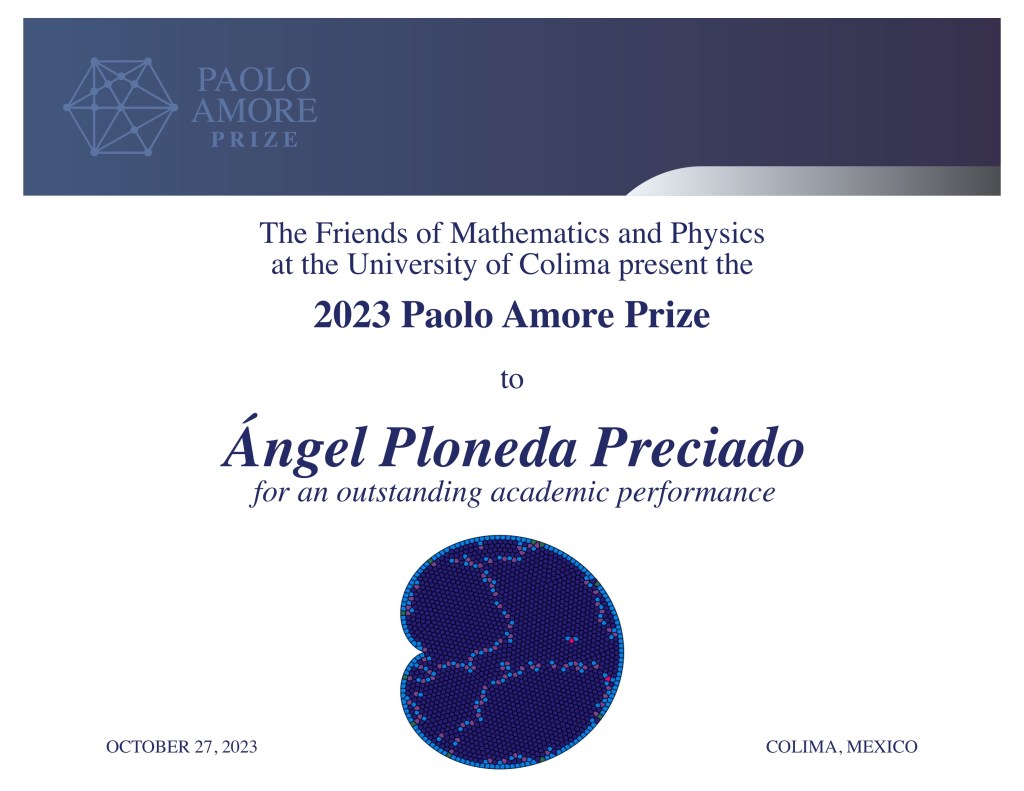 The Paolo Amore prize for academic excellence is awarded to students of the undergraduate programs of Mathematics and Physics at the University of Colima.